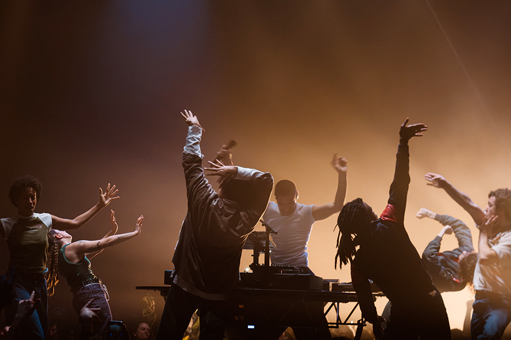 Les réunir dans cette création inédite était une évidence. Installé autour de la scène, le public découvre Hervé aux platines, les danseur·seuses éparpillé·es dans la salle. Pendant que le premier chante et mixe en direct, les second·es bougent dans une énergie communicative. De quoi galvaniser la foule.